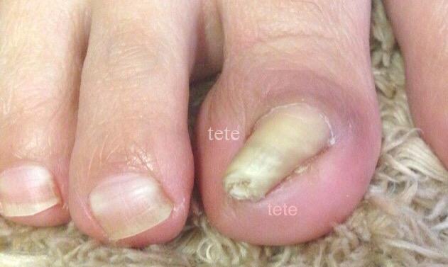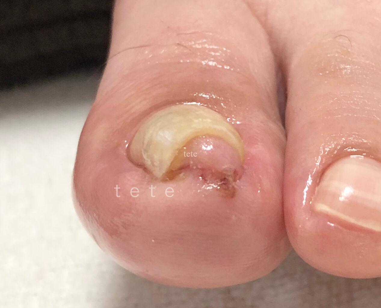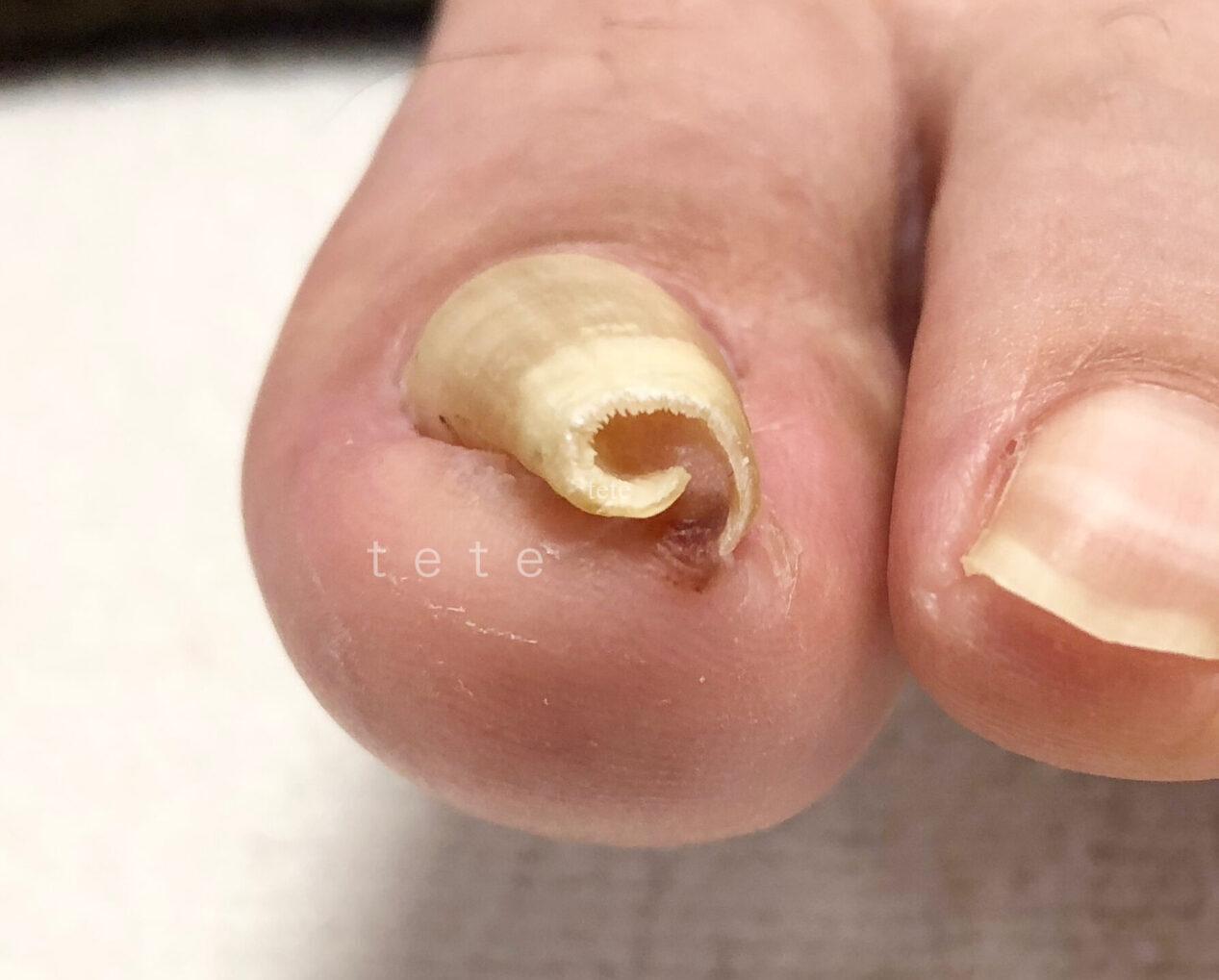 例えばこちらの画像の方も両側が食い込んでいて巻き爪の様に見えますが、実際には爪を切る長さが原因です。